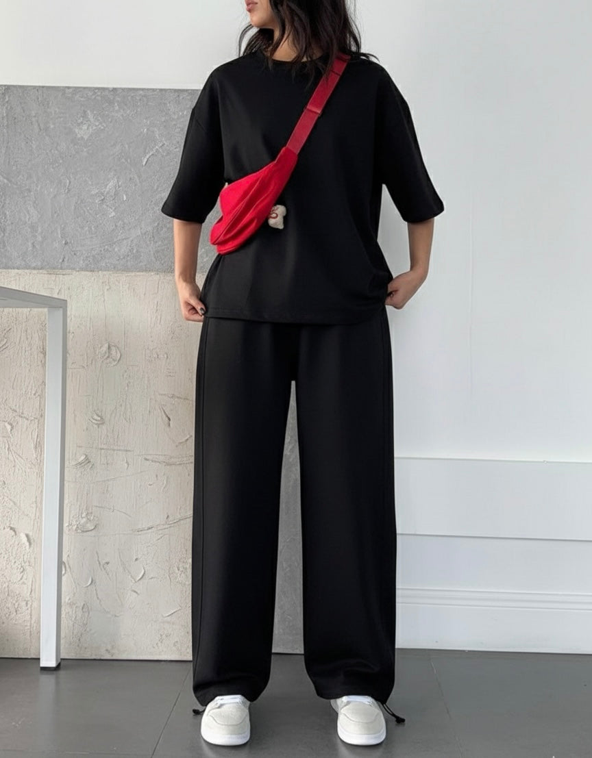 • Perfect Fit: Trendy drop-shoulder tee + flowy wide-leg trousers.