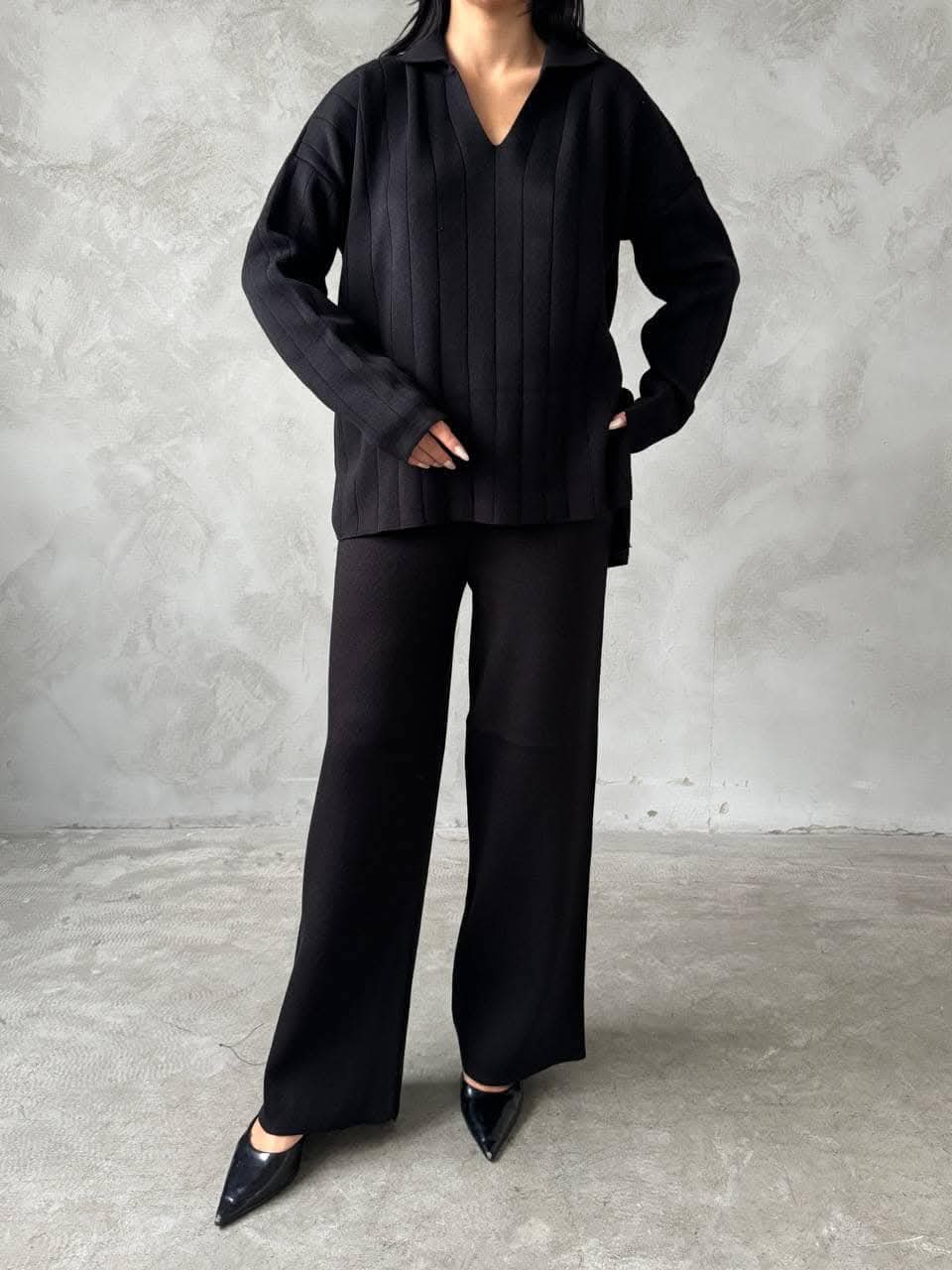 Step into effortless elegance with our Needle Polo V-Neck Co-Ord Set โ a blend of comfort, sophistication, and everyday style. Crafted from soft breathable knit fabric, this set features a classic V-neck polo top paired with tailored straight-fit bottoms, giving a sleek, flattering look for any occasion.