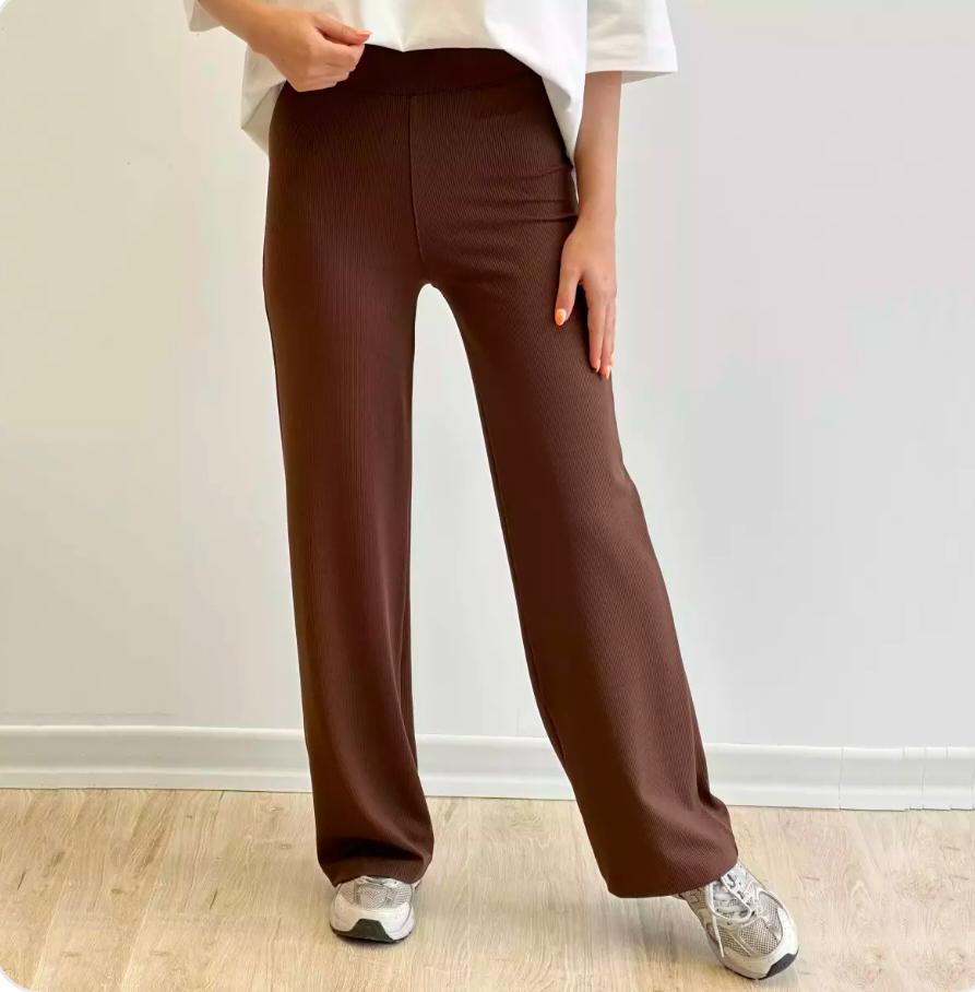 "These ribbed straight flare trousers are designed with a comfortable stretch fabric that hugs your body while maintaining a sleek silhouette. Featuring a ribbed texture for a stylish touch, they fall straight through the thighs and gently flare out at the hem, creating a flattering and versatile look. Perfect for pairing with casual tops or dressy blouses, these trousers bring both comfort and elegance to your wardrobe."